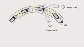 Hệ thống cân bằng điện tử VSC kiểm soát công suất động cơ và phân bổ lực phanh hợp lý tới từng bánh xe, nhờ đó giảm thiểu nguy cơ mất lái, trượt bánh xe